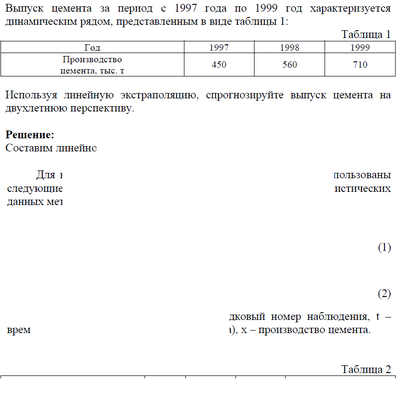 Условие задачи: Выпуск цемента за период с 1997 года по 1999 год характеризуется динамическим рядом, представленным в виде таблицы 1: