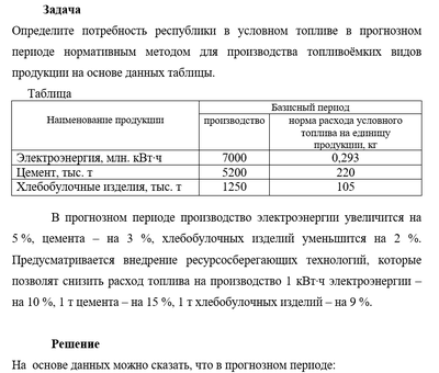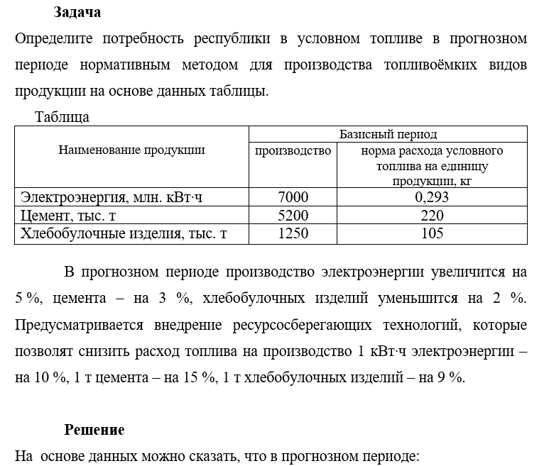 Определите потребность республики в условном топливе в прогнозном периоде нормативным методом для производства топливоёмких видов продукции на основе данных таблицы.