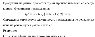 Определите отраслевую эластичность предложения по цене, когда цена на рынке будет равна 5 ден. ед.